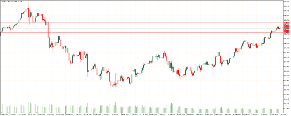 يتم تداول زوج العملات USD / JPY في القدم الخلفية حول 144.50 بعد أن تلقى الين الياباني بعض الراحة من التدخل اللفظي من أكبر دبلوماسي العملة في البلاد كاندا. يبدو أن الاتجاه الهبوطي محدود وسط تباعد السياسة بين بنك اليابان وبنك الاحتياطي الفيدرالي وقبل البيانات الأمريكية الرئيسية.