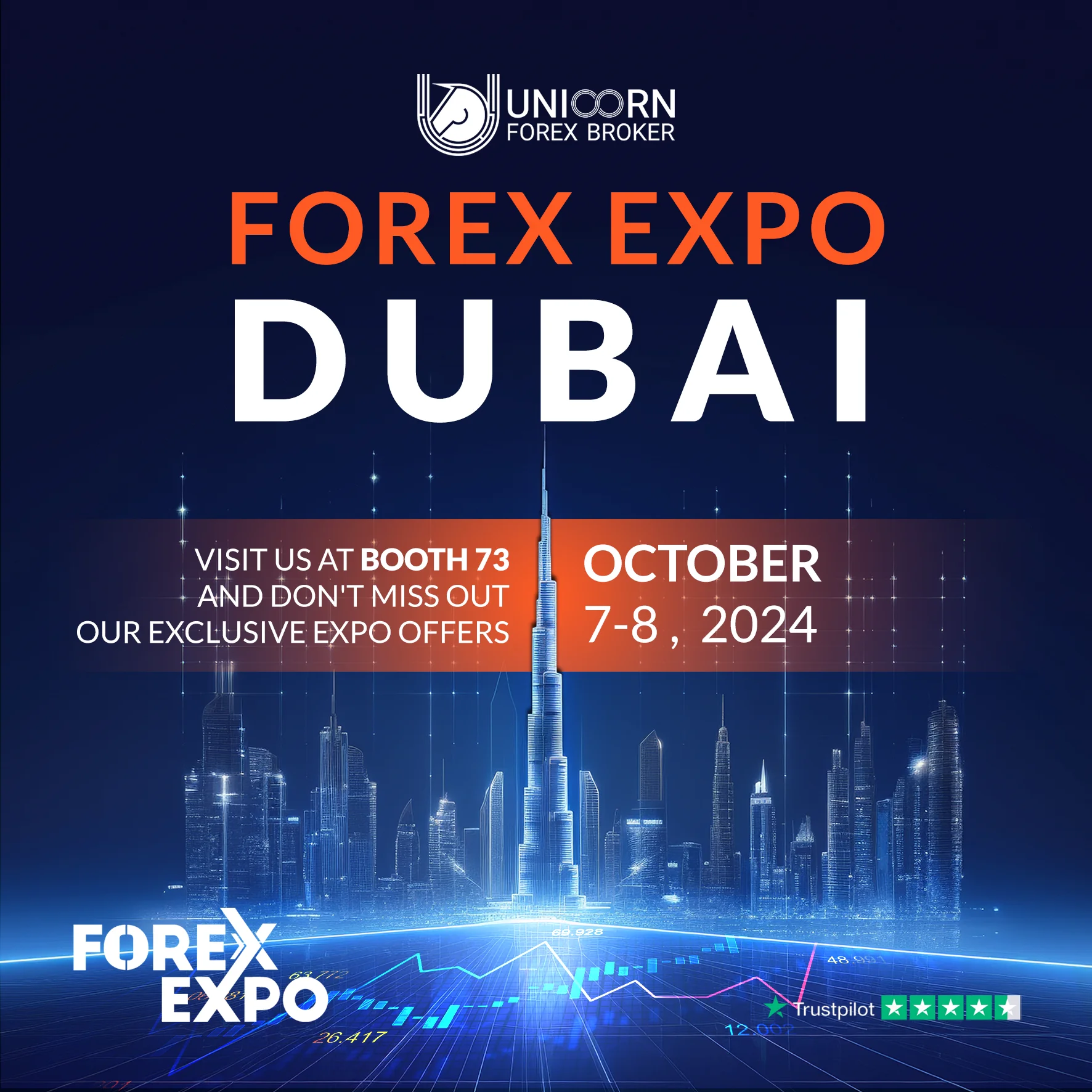 On behalf of Unicorn Forex Brokers, we cordially invite you to visit the Unicorn Forex Brokers booth at the specialized Forex Expo Dubai, scheduled to take place on October 7th and 8th, 2024, at the Dubai World Trade Center.