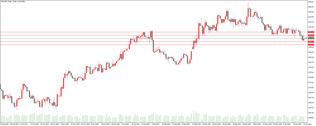 من ناحية أخرى، إذا استمر الذهب في الاتجاه االهبوط إلى نطاق 1908.17، فمن المتوقع أن يستمر الهبوط إلى نطاق 1895.54